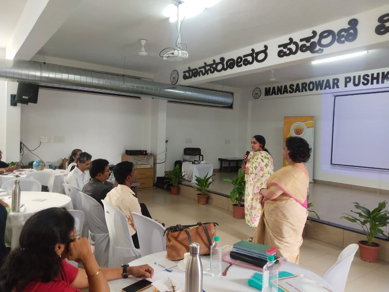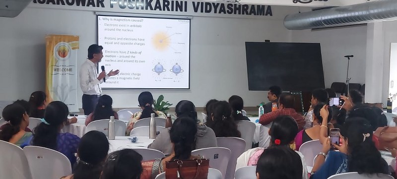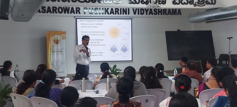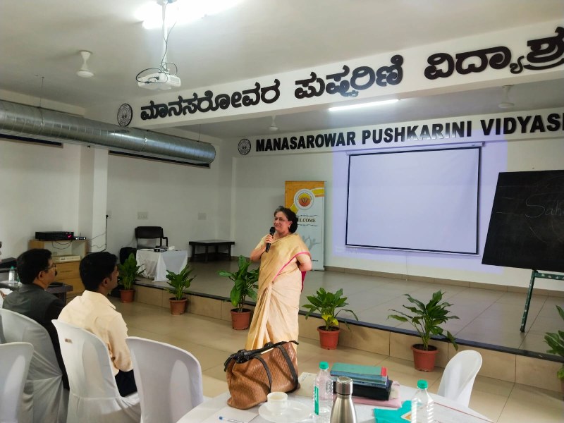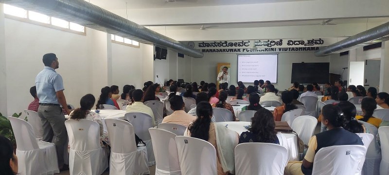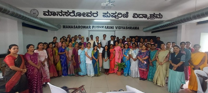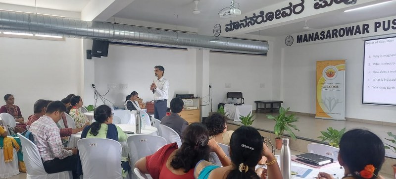 One day workshop for Science and Mathematics teachers of member schools of MSSC was organised on 29th July 2024 at Manasarovar Pushkarini Vidyashram, Mysore. The workshop was conducted by ‘Connecting The Dots’ organisation from Bangalore. Mr. Rajesh Rao, CEO of Connecting the dots was the resource person along with Ms. Rashmi Kikshit. Unique teaching techniques and mis conception among teachers were highlighted in the session. More than 100 teachers participated in the workshop