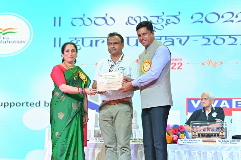 After a gap of two years Mysore Sahodaya School Complex, MSSC organized Guru Utsav- 2022 in De paul International School & College auditorium on 10 th September 2022 at 3.00pm. As the tradition goes, a senior teacher Prof. Prabhuprasad, Former Principal Maharani’s Science College Mysuru, Chairman of Bhagawan Shri Satya Sai Baba Mahila and Makkala Kuta was felicitated for his outstanding contribution in the field of education. Sri. P Balachandran, Former CEO Manipal Foundation was the Key-note speaker. The formal programme was followed by a cultural extravaganza. Teachers from 16 schools presented their cultural programmes. It was a vibrant gathering of 1500 teachers from different MSSC member schools. Principals, Management members and the teachers at one place was a good combination indeed. All in all it was a great show.
