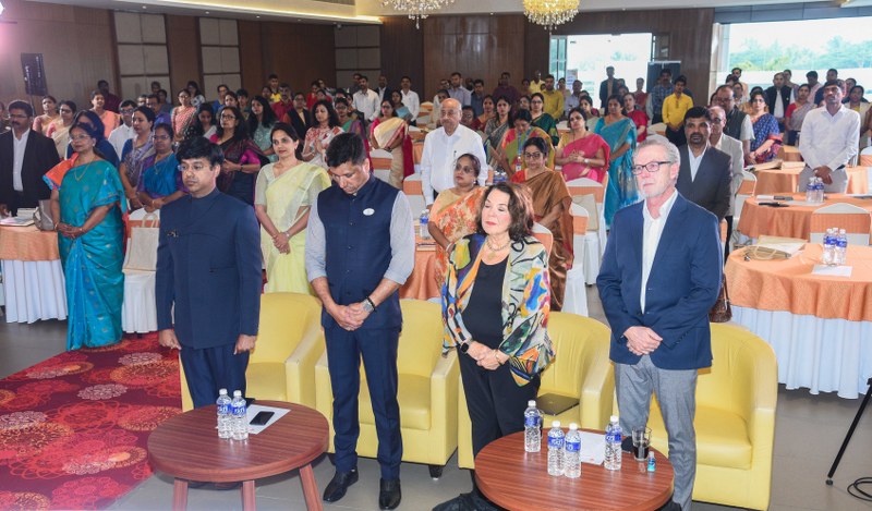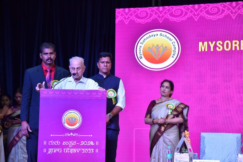Mysore Sahodaya School Complex has conducted ‘Guru Utsav 2024’ an event to honour teachers on 14th September 2024 at De Paul International School & College auditorium. It was an annual event of MSSC to recognise the contribution of educators to the field of education. More than 1200 teachers participated in the event. Mr. K. K Muthanna a senior educationist and former Principal of JSS Public school was felicitated on the day. Prof S Giridhar, Member of Azim Premji University was the keynote speaker of the day who spoke about the role of teachers in shaping the society. This mega event concluded with a variety of cultural programmes performed by teachers of member schools.