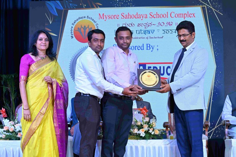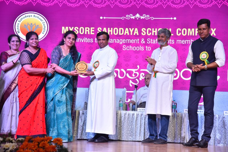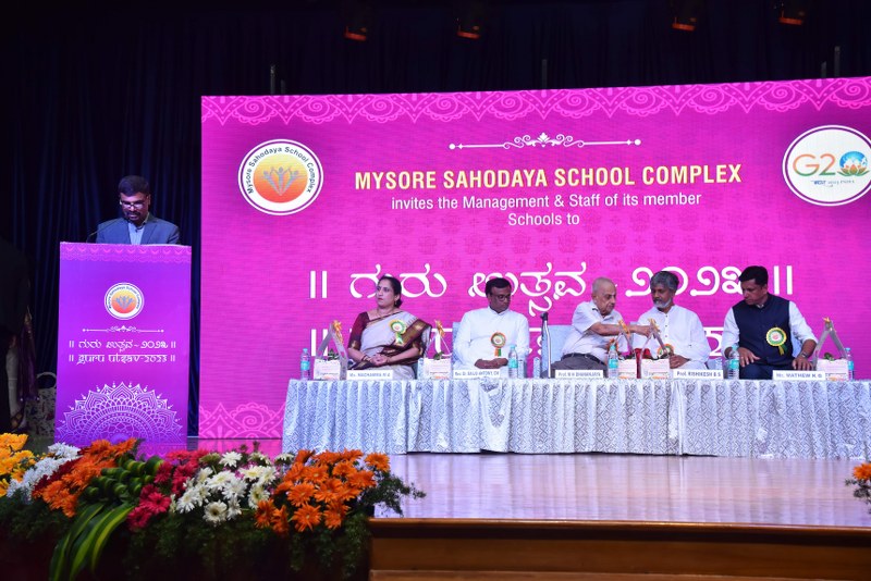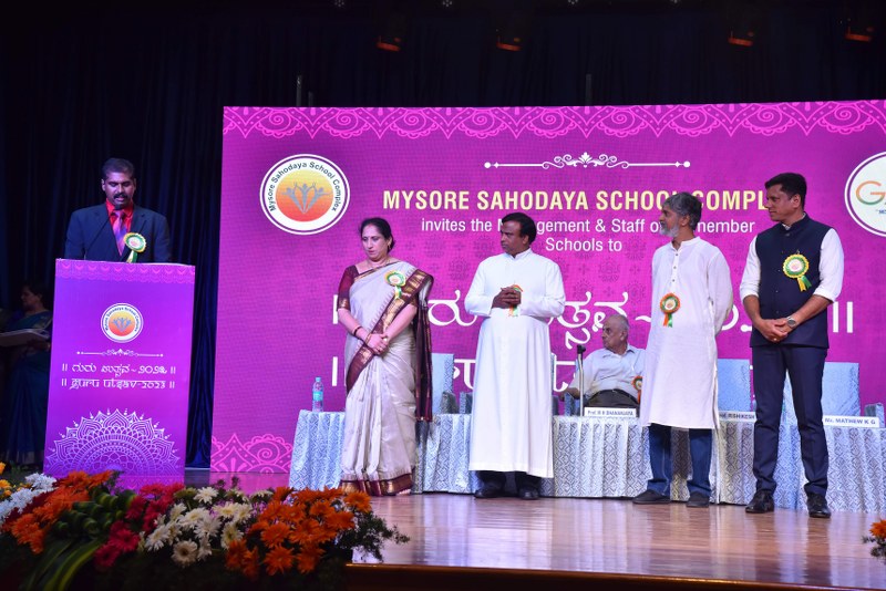 Mysore Sahodays School Complex(MSSC) held ‘Guru Utsav, the annual teachers’ day celebrations of the member schools of MSSC on 14th September 2019 at Open Auditorium of Mahajana Public School, Mysuru. In every ‘Guru Utsav’ celebrations, MSSC felicitates one eminent educationist of the city. This year Mr. Anantha Kumar, the Managing Trustee of Divya Deepa Charitable Trust was felicitated for his outstanding contribution in the field of education through his non conventional school ‘Kaliyuva Mane’. Prof Venkatesha Murthy, Dean, Research and Head, Department of Extension Education Regional Institute of Education, Mysuru was the key note speaker. There was cultural programme form the teachers of member schools of sahoadaya soon after the formal function. More than one thousand educators participated to witness the tribute to teachers