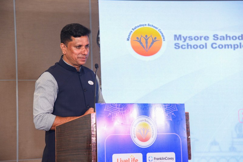 Mysore Sahodaya School Complex conducted a Leadership Workshop and the First General Body Meeting on 26th July, Wednesday 9.00 AM to 4.00PM in Hotel Le Ruchi. The Resource Person for the Principals’ workshop was Dr. Kannan Girish M D, Child Psychiatrist & Founder, LiveLife Education There were 72 participants in this programme. The topic for the day was LEADER IN ME