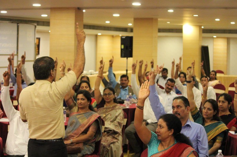 Dr. Kannan’s enthusiasm was an energy booster to all. He started with an energiser on celebrating every accomplishment. He insisted that the Principals in room must drop all guards and participate in the entire day’s programme. Dr. Stephen Covey’s leadership principles were discussed. Dr. Kannan shared his success stories to motivate the leaders in the room to be empathetic, to communicate effectively, to take risks, to build trust in the organization and lot more.